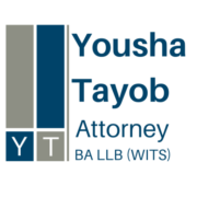 Welcome! Yousha Tayob Attorneys was established in 1999, and specializes in the following: Criminal Law Insurance Law Labour & Employment Family Law Tax Law Banking & Finance All services Get in touch Please enable JavaScript in your browser to complete this form.Name *FirstLastEmail *Comment or Message *CommentSubmit